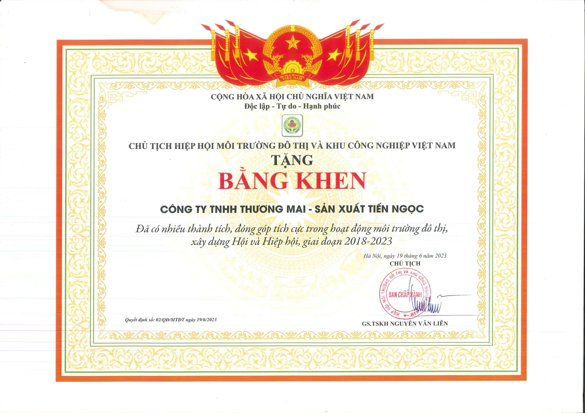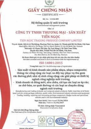 Gần 20 năm hoạt động với đội ngũ nhân viên năng động, có nhiều năm kinh nghiệm, luôn liên kết hợp tác với khách hàng và đối tác tạo ra liên kết bền vững trong việc phát triển sản phẩm mới và chất lượng từ đó đạt thành tựu nổi bật cho doanh nghiệp và khẳng định vị thế thương hiệu Tiến Ngọc tại Việt Nam và quốc tế trong ngành công nghiệp chất thải.